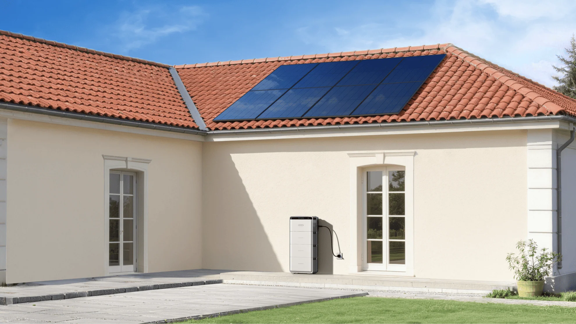 Een AC-gekoppelde thuisbatterij biedt maximale vrijheid voor plaatsing. De bestaande zonnepanelen op het dak blijven intact, terwijl de opslagunit op de meest praktische locatie wordt gemonteerd.