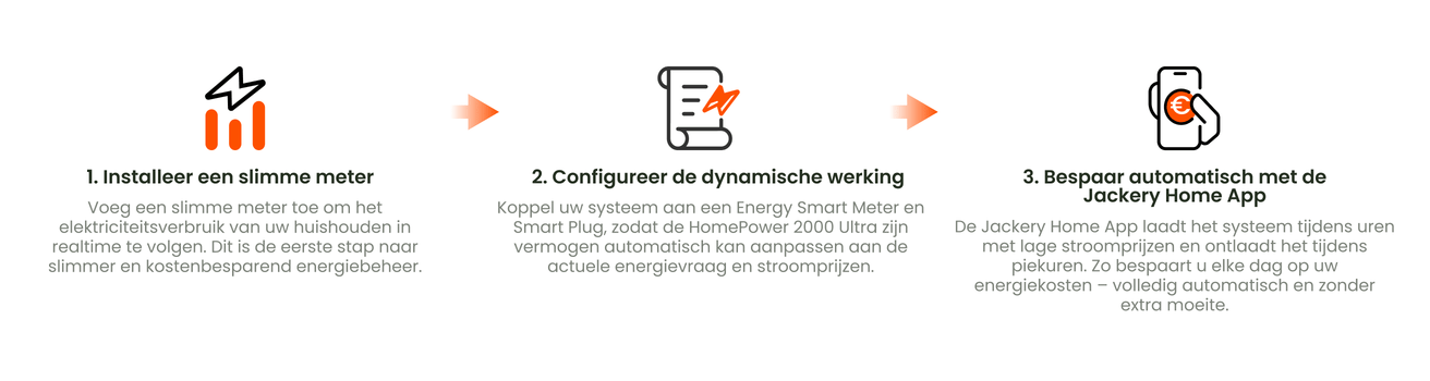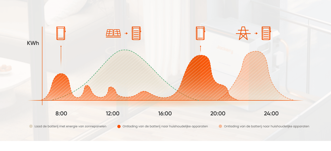 In de slimme modus laadt de Jackery Home App het systeem automatisch op tijdens de laagste stroomprijzen en ontlaadt het bij piektarieven.