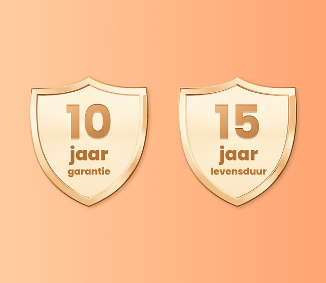 Geniet van langdurige gemoedsrust met 10 jaar garantie en een ontworpen levensduur van 15 jaar, wat ervoor zorgt dat uw systeem de komende jaren betrouwbaar blijft.