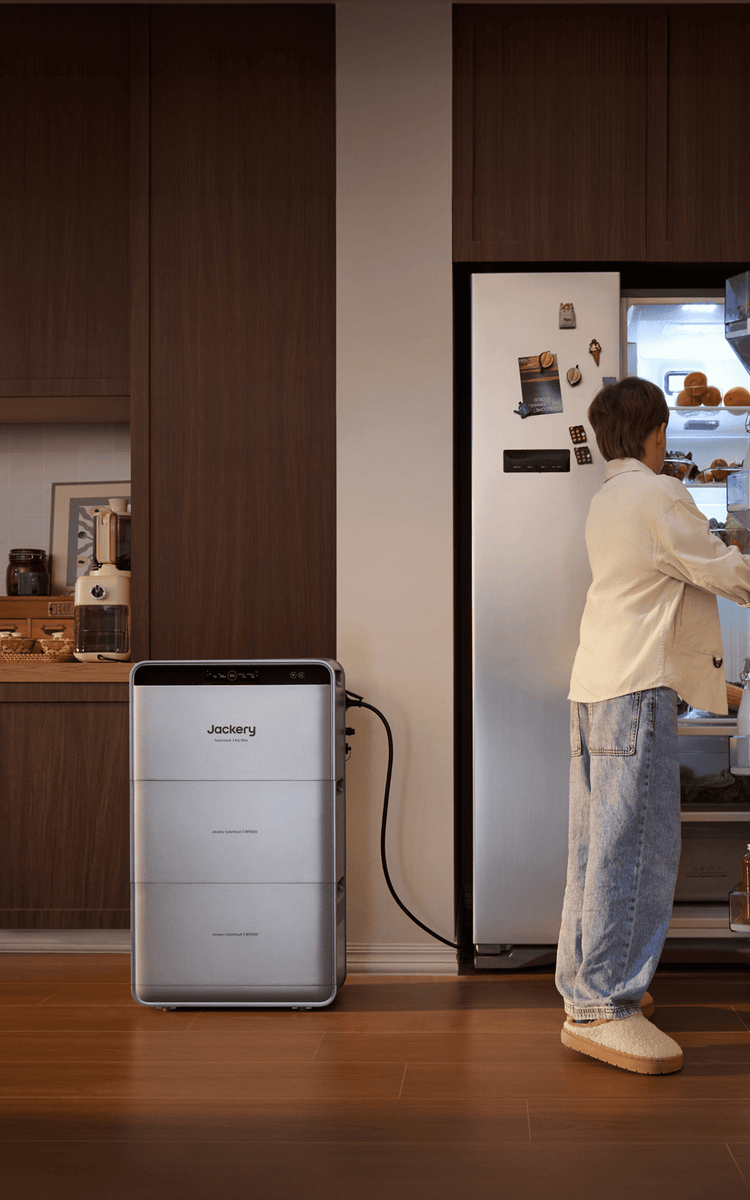 Wanneer de zonne-energieopwekking onvoldoende is, gebruikt het systeem bidirectionele koppeling om de batterij automatisch vanaf het net op te laden tijdens daluren — zodat er altijd energie beschikbaar is wanneer dat nodig is. (Automatisch opladen kan worden ingeschakeld in de Jackery App.)