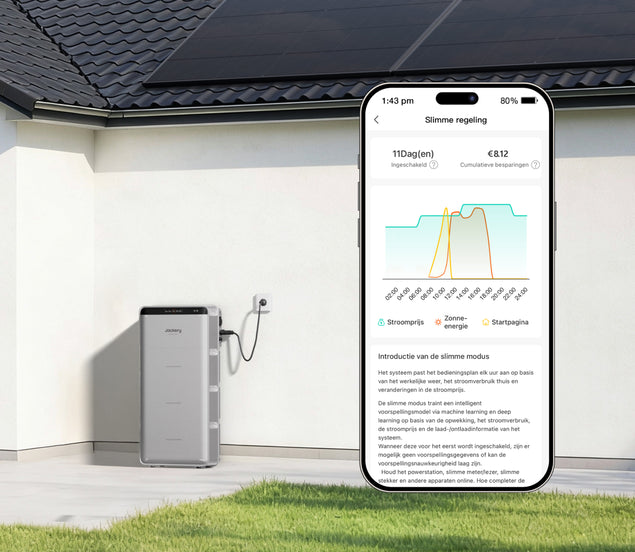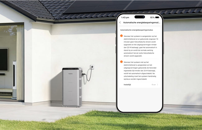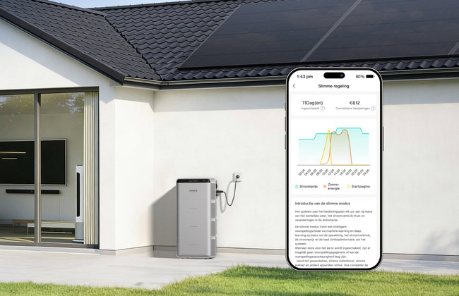 U kunt via de app ook de Slimme AI modus inschakelen. Deze modus analyseert elektriciteitstarieven, zonnevoorspellingen en uw gebruikspatronen om de optimale bedrijfsstrategie te berekenen en uit te voeren voor maximale besparingen.
