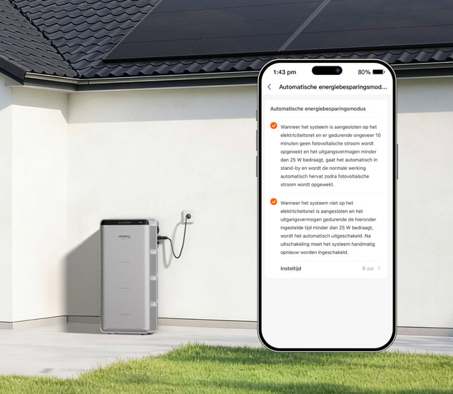 Om nagenoeg nul netteruglevering te bereiken, heeft u een Jackery Smart Meter (bijv. 3P) of een compatibele energiemonitor nodig. Deze meet in realtime het totale elektriciteitsverbruik van uw huis en de uitwisseling met het stroomnet.