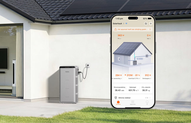 Met de SolarVault 3 Pro Max AC gaat uw overtollige zonne-energie niet verloren. Het systeem sluit eenvoudig aan op uw slimme meter en slaat automatisch overtollige energie op voor later gebruik.
